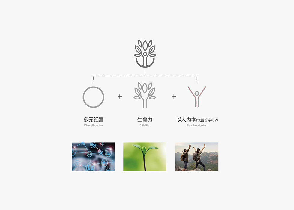 項(xiàng)目背景:悅益生物主要銷售實(shí)驗(yàn)室用生命儀器,標(biāo)志LOGO設(shè)計(jì)突出企業(yè)的經(jīng)營理念,以生命為本,以人為本,充滿生命力,欣欣向榮。標(biāo)志LOGO設(shè)計(jì)組合元素中,圓形象征多元經(jīng)營;上面的樹葉象征著生命力;下面的樹干象征著以人為本。標(biāo)志logo組合,色彩上運(yùn)用綠色和灰色搭配,綠色代表生機(jī),灰色則代表信任。