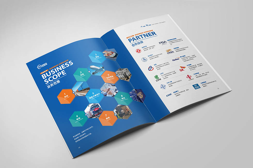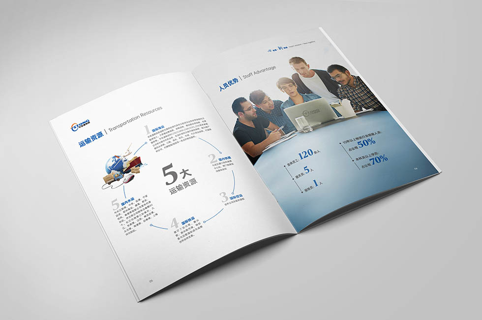 項(xiàng)目背景:武漢宇圣通物流有限公司依托武漢得天獨(dú)厚的陽邏深水港及九省通衢的區(qū)域優(yōu)勢,于2010年6月在武漢陽邏港旁新建龍發(fā)物流園,2011年建成并開始經(jīng)營,經(jīng)過近10年的發(fā)展,形成海、陸、空全方位物流體系。業(yè)務(wù)范圍覆蓋國際段集裝箱運(yùn)輸代理;國內(nèi)段集裝箱、散貨和大件運(yùn)輸;倉儲裝卸;報關(guān)報檢理貨。艾的爾承接其畫冊設(shè)計制作,成立品牌設(shè)計小組,與企業(yè)進(jìn)行深入溝通,明確企業(yè)對于畫冊設(shè)計的需求,封面采用白色為主,背景圖采用方塊圖拼接,凸顯行業(yè)屬性交通運(yùn)輸、倉儲和郵政業(yè)。