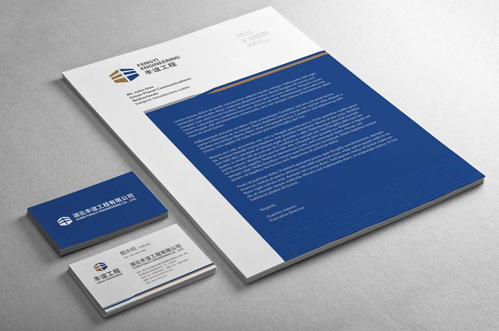 項目背景:湖北豐誼工程有限公司經(jīng)營范圍包括房屋建筑工程、市政公用工程、水利水電工程等,擁有建筑工程施工總承包貳級、環(huán)保工程專業(yè)承包叁級資質(zhì)。艾的爾設(shè)計承接其VI設(shè)計,成立品牌VI設(shè)計小組7人,及時了解客戶需求變更調(diào)整方案,有效的完成項目,讓項目最終完美呈現(xiàn)。其標志由「F、E」變形而來,融合設(shè)計而成的建筑外形傳達出了豐誼工程的行業(yè)屬性,線條簡潔,動態(tài)剛勁有力,代表旺盛的生命力和勃勃生機;整體造型融入“豐”字結(jié)構(gòu),既代表豐誼的品牌符號,同時也寓意企業(yè)繁榮興盛的美好愿望。標志負形又酷似一架騰空而起飛機,象征公司事業(yè)騰飛、業(yè)務(wù)發(fā)展蒸蒸日上。色彩由藍色、土黃色相結(jié)合,藍色象征工程建造,土黃色象征建筑行業(yè)。