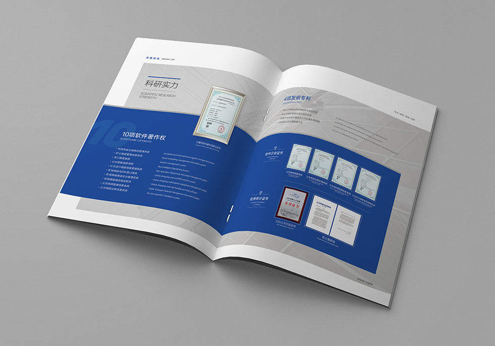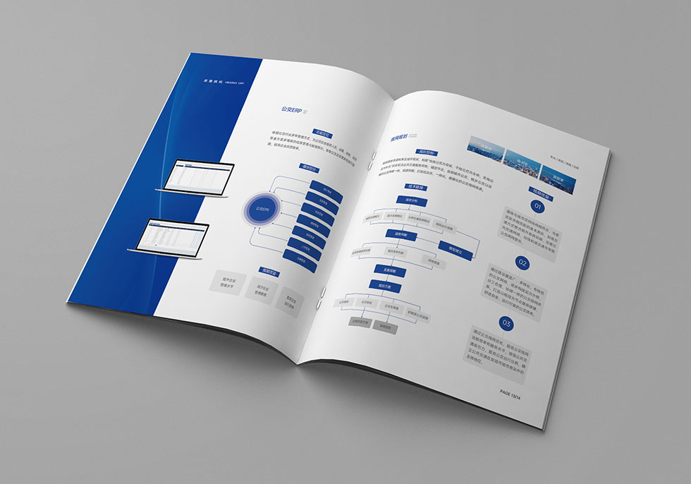 項目背景:武漢禾青優(yōu)化科技有限公司創(chuàng)建于2019年6月,軟件著作權(quán)10項,發(fā)明專利5項,以全面建設(shè)公共交通運營服務(wù)智能化為核心,為用戶(政府、公交企業(yè)、乘客)提供智能公交一體化解決方案,幫助建成高品質(zhì)、高效益的公共交通服務(wù)體系。艾的爾承接其畫冊設(shè)計制作,成立品牌設(shè)計小組,與企業(yè)進行深入溝通,明確企業(yè)對于畫冊設(shè)計的需求,畫冊采用藍色與白色,體現(xiàn)科技感,奠定了畫冊整體基調(diào)。封面以公交現(xiàn)線圖為載體,體現(xiàn)企業(yè)主營業(yè)務(wù),表現(xiàn)手法比較創(chuàng)新,內(nèi)頁圖片采用跨版的表現(xiàn)手法,大氣高級,提煉核心要點,進行精煉設(shè)計。封面采用藍色,藍色則寓意企業(yè)、汽車等標準色,它代表智慧,象征著和諧世界、永不言棄的精神。