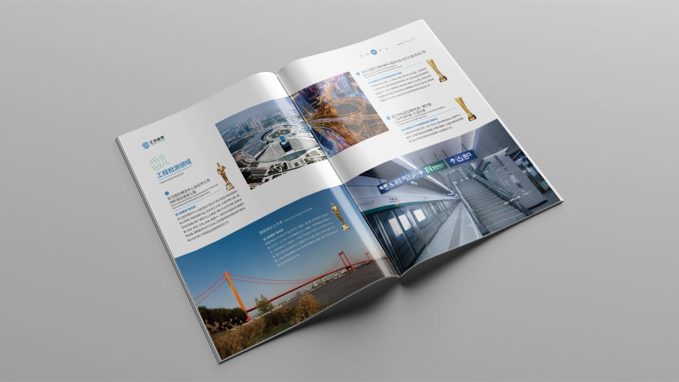 項目背景:武漢匯科質(zhì)量檢測有限責任公司前身為1984年成立的市政工程實驗室,公司成立于2006年,擁有建工檢測資質(zhì)6大項,共400余個檢測參數(shù),工程勘察乙級資質(zhì)4大項、測繪乙級資質(zhì)、排水管道與評估資質(zhì),匯科公司始終致力于建設(shè)工程的質(zhì)量檢測和技術(shù)創(chuàng)新,持續(xù)推進產(chǎn)學研應(yīng)用轉(zhuǎn)化,至今已為數(shù)以千計的建設(shè)工程項目提供優(yōu)質(zhì)檢測服務(wù),并且為建設(shè)單位提供多樣化的安全文明標準化產(chǎn)品和服務(wù)。 匯科公司從上世紀80年代末已開展見證取樣檢測,現(xiàn)業(yè)務(wù)領(lǐng)域已逐漸從單一的見證取樣檢測資質(zhì),拓展到建設(shè)工程檢測各方面,構(gòu)筑了工程檢測、勘察領(lǐng)域、智慧檢測領(lǐng)域、協(xié)同發(fā)展衍生領(lǐng)域四大業(yè)務(wù)板塊。匯科公司前身實驗室曾獲得2004年度湖北省建設(shè)工程質(zhì)量檢測先進示范站、匯科公司擁有AAA企業(yè)信用等級證書,榮評過市、省、全國“守合同重信用企業(yè)”、2018-2019年度武漢建筑工程質(zhì)量檢測機構(gòu)“五星級檢測單位”、全國高新技術(shù)企業(yè)、武漢建筑業(yè)“抗疫先進企業(yè)”等榮譽。目前,匯科公司正在強化建設(shè)工程全產(chǎn)業(yè)鏈服務(wù)能力,未來,檢測公司將繼續(xù)開拓消防、房屋安全鑒定等領(lǐng)域,并進一步推進產(chǎn)學研應(yīng)用轉(zhuǎn)化和智慧城市運維平臺建設(shè),爭做智慧檢測專家。艾的爾承接其畫冊設(shè)計制作,成立品牌設(shè)計小組,與企業(yè)進行深入溝通,明確企業(yè)對于畫冊設(shè)計的需求,封面封底采用藍色為主體色,藍色寓意穩(wěn)重、大氣、誠信。將企業(yè)簡介、核心設(shè)備、團隊建設(shè)展現(xiàn)出來。