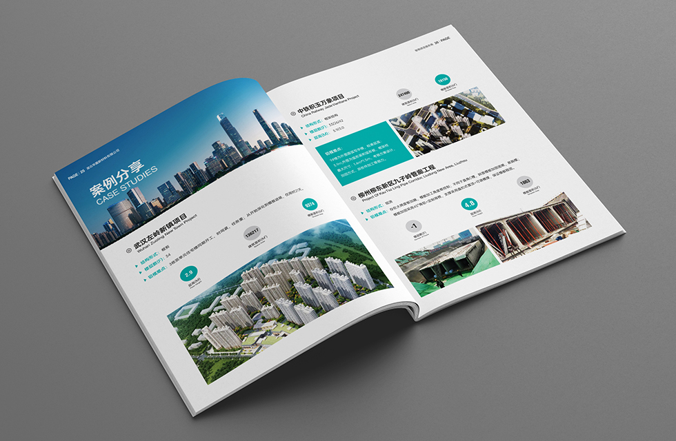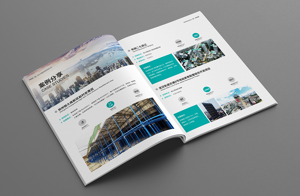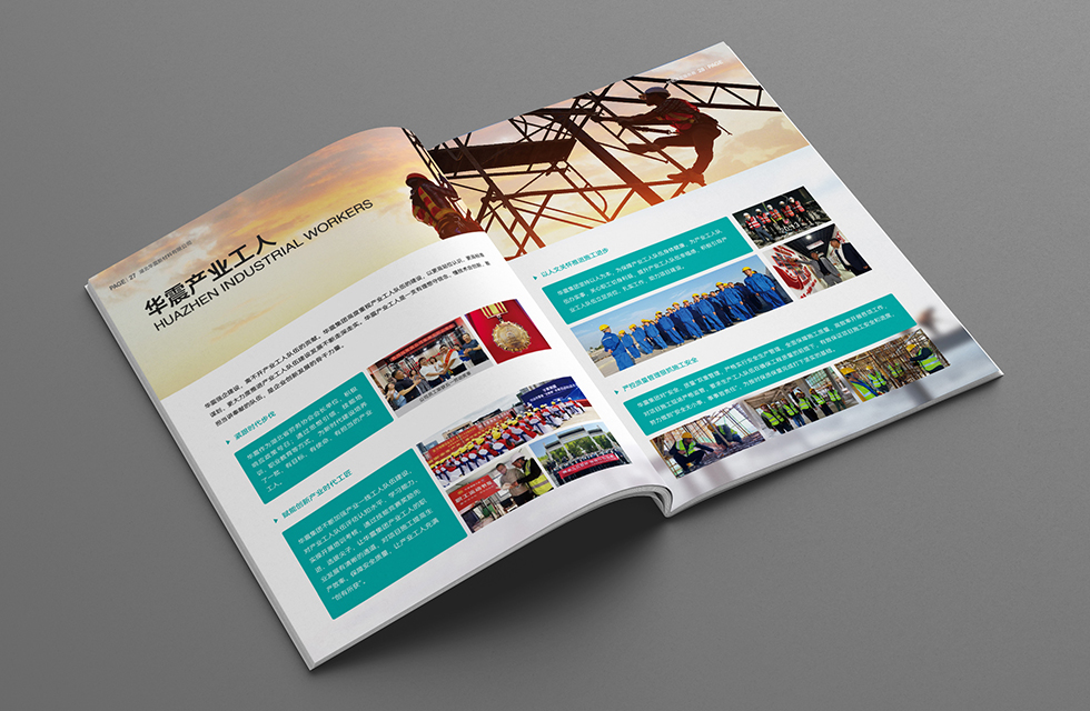 項(xiàng)目背景:華震集團(tuán)是一家以經(jīng)營建筑材料為主,集建筑總包、勞務(wù)大清包、鋼材商砼貿(mào)易、新材料研發(fā)制造、鋼材大小料加工、倉儲(chǔ)和物流為一體的中大型企業(yè)。集團(tuán)建有黨組織、工會(huì)、公益志愿組織和完善的企業(yè)文化建設(shè)體系。艾的爾設(shè)計(jì)接受其委托,承接畫冊設(shè)計(jì)項(xiàng)目。在畫冊設(shè)計(jì)、創(chuàng)意的過程中,設(shè)計(jì)師通過對行業(yè)屬性進(jìn)行深入地了解,在畫冊設(shè)計(jì)、創(chuàng)意的過程中,重點(diǎn)在表現(xiàn)企業(yè)主要是從事建筑總包,建筑材料供應(yīng)等服務(wù),因此在設(shè)計(jì)中以藝術(shù)的手法表現(xiàn)企業(yè)的行業(yè)屬性。在畫冊色封面設(shè)計(jì)中,設(shè)計(jì)師考慮到華震集團(tuán)的企業(yè)定位是智能建造服務(wù)商,生產(chǎn)理念上突出智能化、標(biāo)準(zhǔn)化、環(huán)?;?,因此色彩選擇藍(lán)綠色系,給人環(huán)保和智慧的觀感,給人一種平和恬靜的感官效果,封面中建筑樓體直接展現(xiàn)華震的業(yè)務(wù)范圍,建筑類(地下室、辦公體系建筑、住宅體系建筑)建造服務(wù),作為企業(yè)和項(xiàng)目畫冊,能夠開門見山傳達(dá)畫冊的類別和價(jià)值。從封面中都彰顯出企業(yè)的實(shí)力強(qiáng)大,沉穩(wěn)細(xì)致。在內(nèi)頁的設(shè)計(jì)中,按黃金分割比例設(shè)計(jì),標(biāo)題與文字的板塊相互呼應(yīng)文圖分布疏密有致,整個(gè)版面簡潔優(yōu)雅。大膽留白,恰到好處的留白使畫冊設(shè)計(jì)版面注入了生機(jī),版面設(shè)計(jì)中有部分透明化的背景圖,是整個(gè)畫面不死板呆滯,整體給人大氣、智慧的印象。整個(gè)畫冊傳達(dá)出了沉穩(wěn)、專業(yè)的視覺形象,對塑造企業(yè)專業(yè)、實(shí)力的形象有極大的作用。