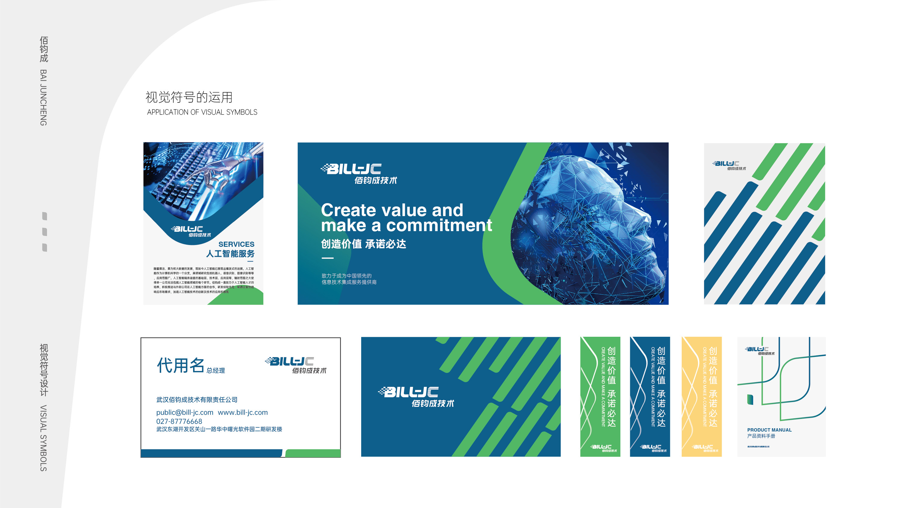 項(xiàng)目背景:武漢佰鈞成技術(shù)有限責(zé)任公司(以下簡(jiǎn)稱(chēng)“佰鈞成”)致力成為國(guó)際一流的信息技術(shù)集成服務(wù)提供商,總部位于中國(guó)科教之城武漢。經(jīng)過(guò)多年積累,佰鈞成擁有了豐富的大型項(xiàng)目管理經(jīng)驗(yàn),在高科技、通信、能源、金融、制造等行業(yè)形成了獨(dú)具特色的行業(yè)解決方案。艾的爾團(tuán)隊(duì)承接該項(xiàng)目,由品牌總監(jiān)牽頭,主動(dòng)與佰鈞成公司對(duì)接,成立品牌VI設(shè)計(jì)小組。與客戶深入溝通后,企業(yè)logo設(shè)計(jì)寓意比較明確,圍繞著凝聚力、規(guī)范化兩個(gè)平衡點(diǎn)讓字母之間更加緊湊,更像一個(gè)整體,整個(gè)文字無(wú)處不透露著干勁,像一輛動(dòng)力十足的火車(chē),不斷前行,團(tuán)隊(duì)之間互助互愛(ài),圍繞著同一個(gè)目標(biāo)共同進(jìn)步,英文字形傾斜度保持原有度數(shù)--6度,具有傳承之意,而且6這個(gè)數(shù)字從古至今也代表六木大順,寓意著佰鈞成未來(lái)發(fā)展一路高歌,中文字體的傾斜度數(shù)為一-10度,寓意著佰鈞成在專(zhuān)業(yè)上秉承著十全十美的態(tài)度去對(duì)待。