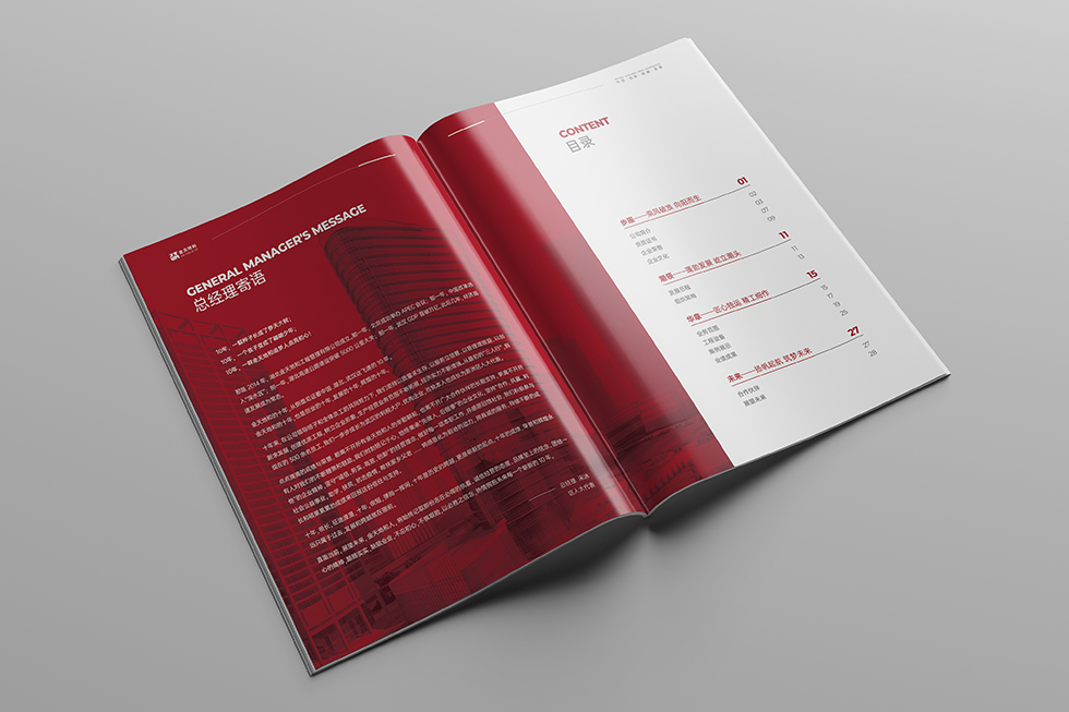 項(xiàng)目背景:湖北金天地和工程管理有限公司成立于2014年,是一家專業(yè)為客戶提供工程施工解決方案的企業(yè)。公司經(jīng)濟(jì)實(shí)力雄厚,專業(yè)技術(shù)能力強(qiáng),設(shè)備先進(jìn),管理完善,施工經(jīng)驗(yàn)豐富。艾的爾設(shè)計(jì)通過與企業(yè)進(jìn)行深入溝通,明確企業(yè)對(duì)于畫冊(cè)設(shè)計(jì)的需求,畫冊(cè)封面內(nèi)容簡潔并突出重點(diǎn),,主色調(diào)采用紅白搭配,對(duì)比強(qiáng)烈,容易吸引注意力。版面圖文并茂,圖片與文字相輔相成,均衡、合理,生動(dòng)活潑的色彩搭配與豐富的細(xì)節(jié),給人以飽滿的視覺印象。