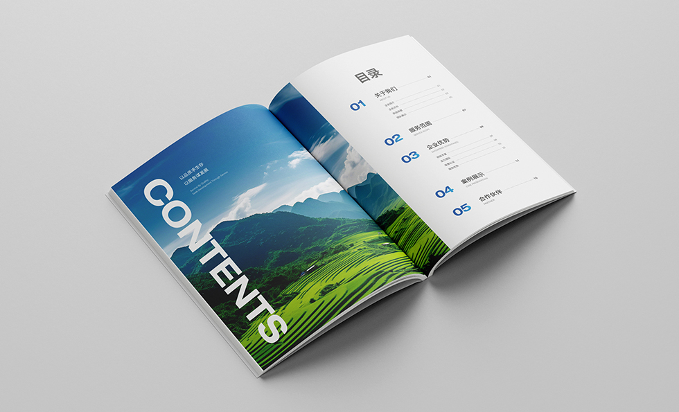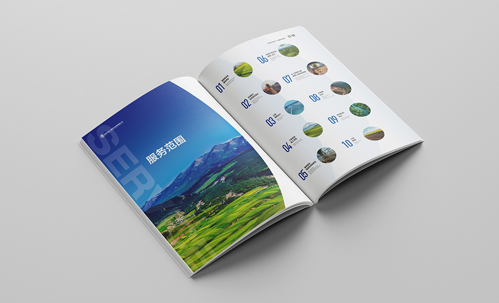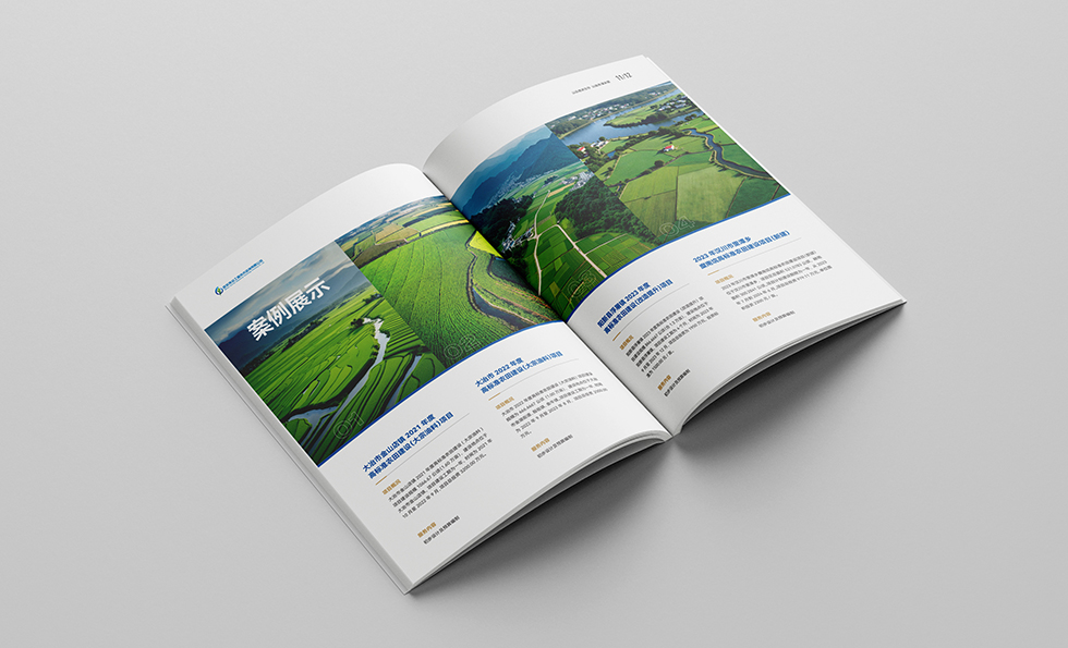 項目背景:武漢堯遠工程技術咨詢有限公司是一家從事工程設計、勘察的綜合類公司,業(yè)務涵蓋水利工程、水土保持方案、高標農田建設等。公司制定了“立足武漢、面向湖北、走向全國”的市場開發(fā)戰(zhàn)略,始終如一地堅持“以品質求生存,以服務謀發(fā)展”的原則,贏得了社會各界的廣泛贊譽。 艾的爾設計通過與企業(yè)進行深入溝通,明確企業(yè)對于畫冊設計的需求,畫冊封面內容簡潔并突出重點,畫冊內頁的顏色選用上,和封面相互呼應,以藍白等清新雅致的顏色為主。整個畫冊,設計精簡、嚴格,充分展現(xiàn)出了企業(yè)的訴求和形象。